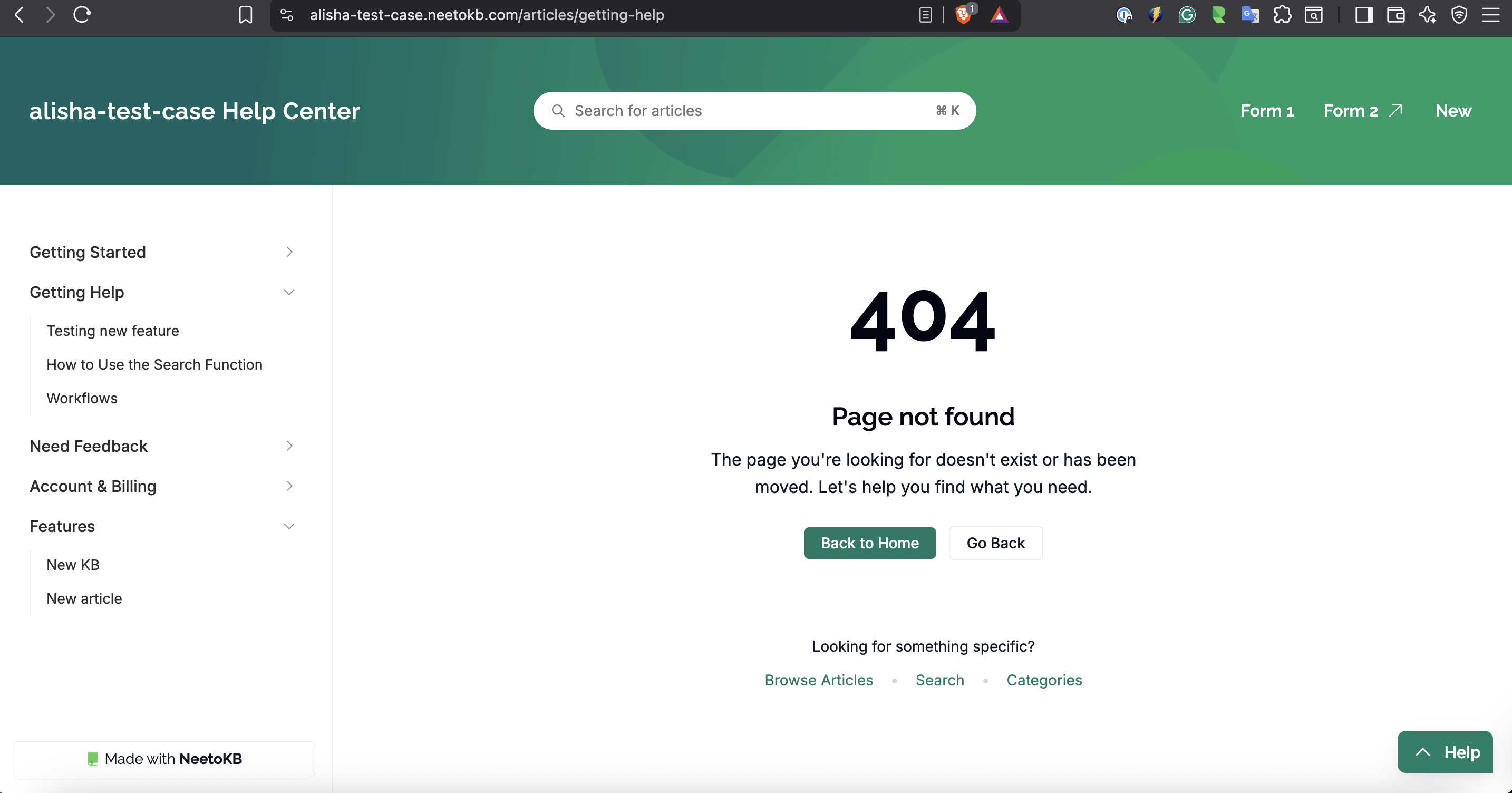 If the linked article is deleted, clicking on the link will show a 404 Page Not Found message.